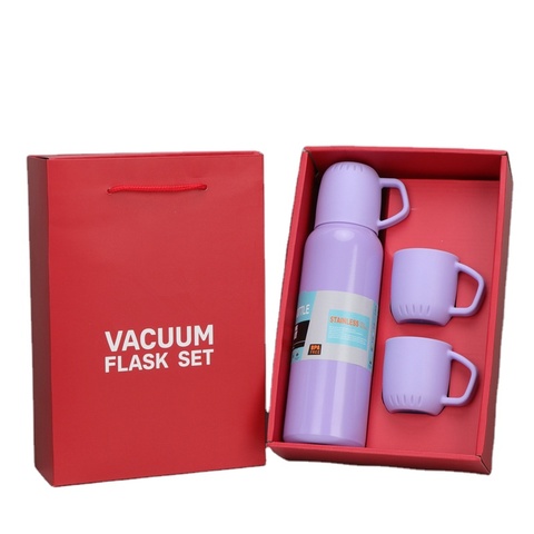 Macron Color 3pcs Outdoor Travel Coffee Tea Drinkware Stainless Steel Insulated Water Bottle Vacuum Flask Set With Gift Box